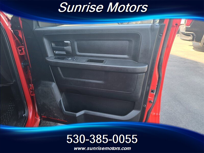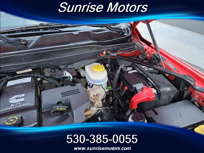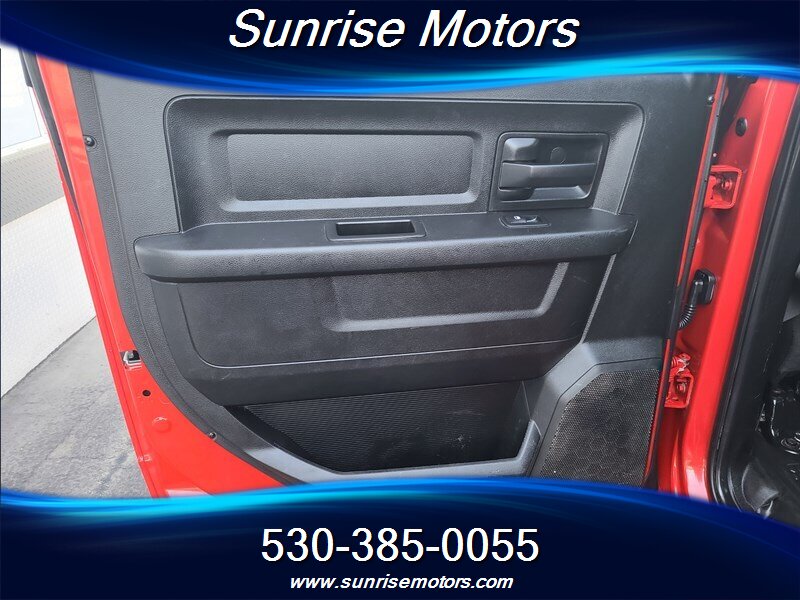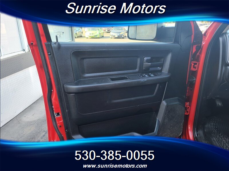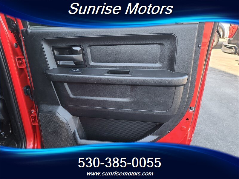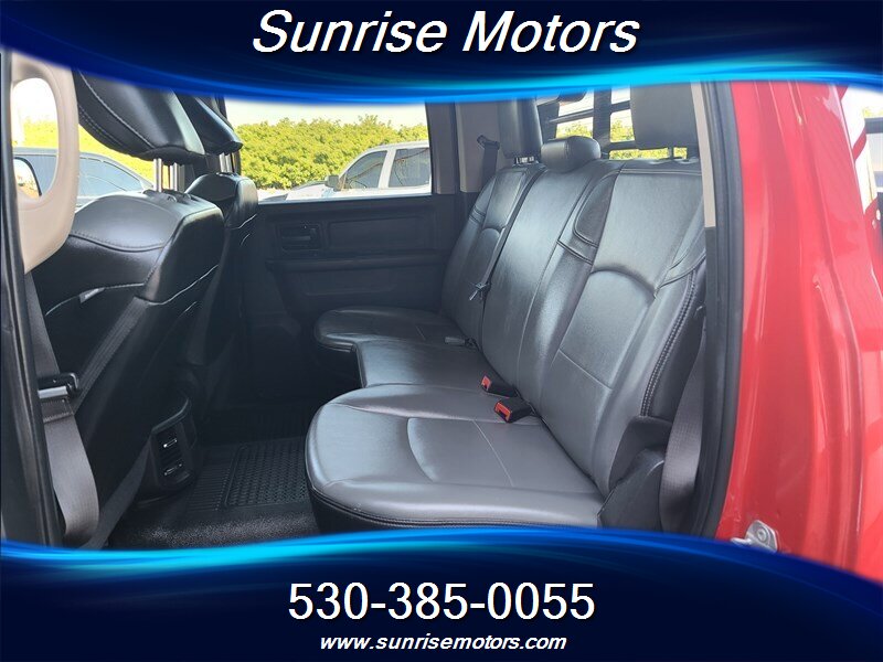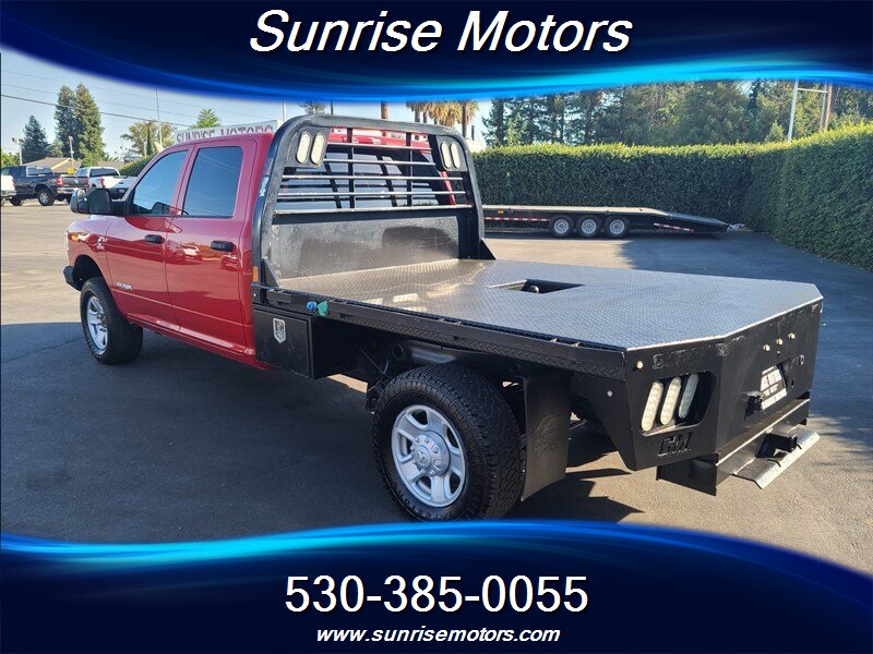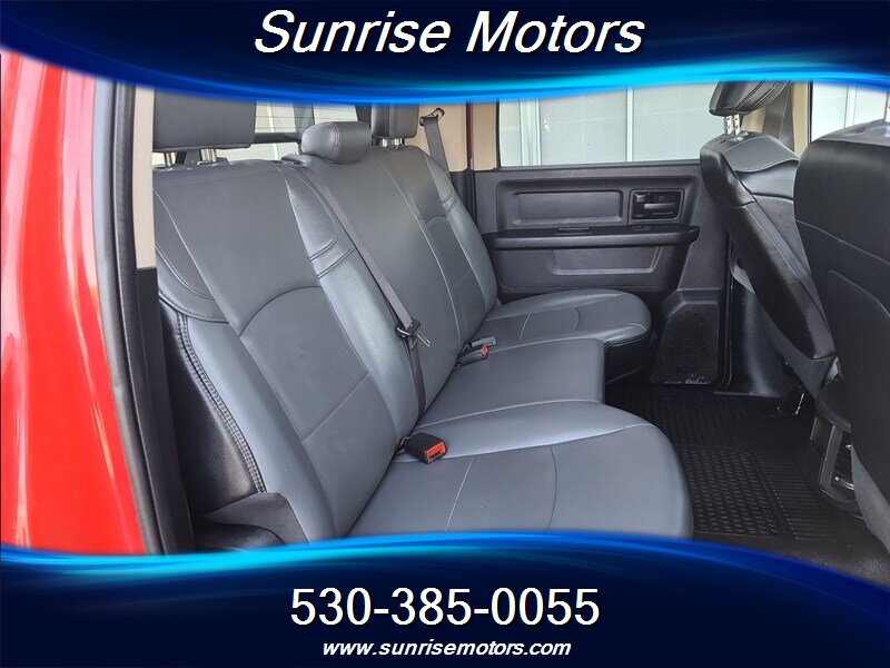 Let's talk about the factory default features of this bad boy. Starting with the exterior, this RAM 2500 Tradesman is painted in a striking Bright Red color that demands attention wherever it goes. The bold and rugged design of the truck is accentuated by its aggressive stance and muscular lines, showcasing its dominance on the road.